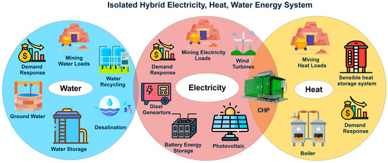 - Mehrjerdi, H.; Saboori, H.; Jadid, S. Power-to-gas utilization in optimal sizing of hybrid power, water, and hydrogen microgrids with energy and gas storage. J. Energy Storage 2022, 45, 103745. [Google Scholar] [CrossRef]