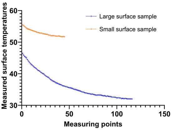 Surface temperature values of the small and the large samples.