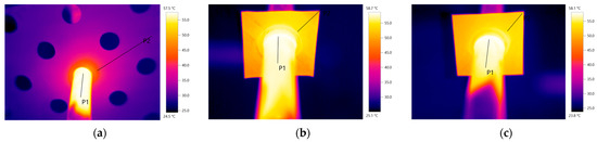 During the measurements, problems were encountered, which made it necessary to rethink the experiment. The first problem was that due to reflective surfaces, the surface temperature of the lamella cannot be measured directly by thermography (Figure 5 and Table 2).
