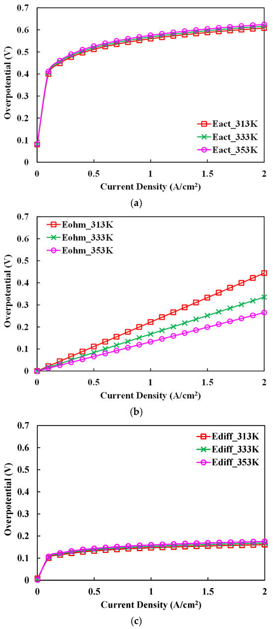 Temperature effects on the polarization phenomena: (a) activation polarization; (b) ohmic polarization; and (c) concentration polarization.