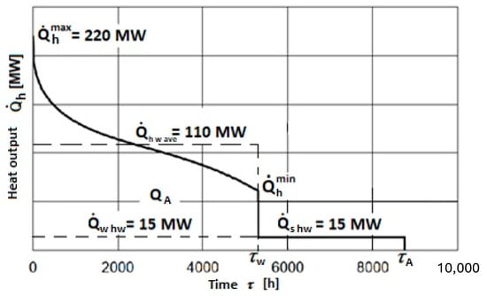- The variability of the demand for district heating capacity (Figure 5) in the case of its qualitative adjustment is represented by the following formula (this formula assumes that the capacities for domestic hot water (DHW) heating in the heating and non-heating seasons are equal to each other, ):where the following equation obviously occurs:where:
