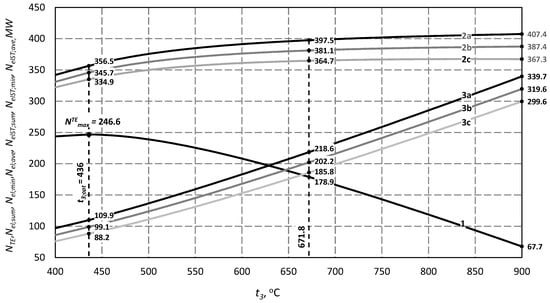 - the steam turbine power output during the heating season (winter) at the peak of demand for district heating (this is the minimum power of the steam turbine due to the maximum extraction of steam to the heat exchangers and ):