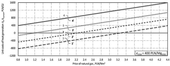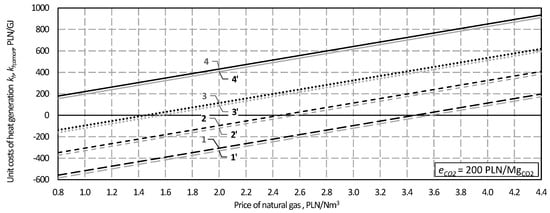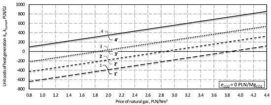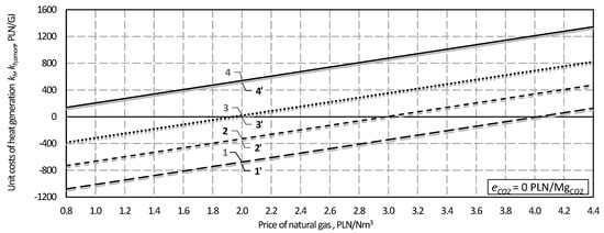 | Unit cost of heat generation kh | PLN/GJ | 540.85 | 839.57 | ||