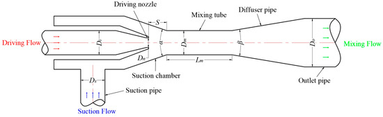The design of the jet pump employed in the experiments of this study is depicted in Figure 1, and its main structural parameters are detailed in Table 1.