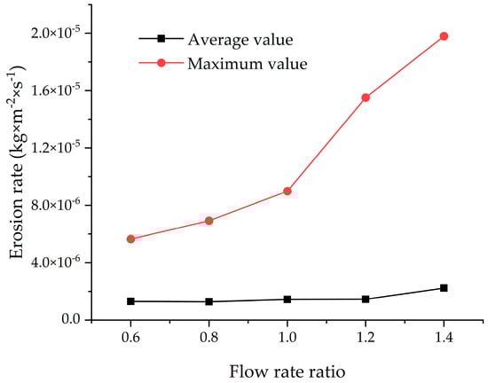 Since the absolute values of the predicted results from the different erosion models showed significant differences, the erosion ratio method was used to more effectively compare the experimental results with the performance of each erosion model. The calculation formula was as follows: