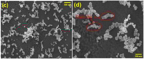 SEM images of mature soot: (a,b) sample #1; (c,d) sample #2.
