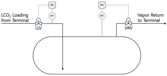 We validate the effectiveness of this control method using HYSYS dynamic simulations (Aspen Technology, Bedford, MA, USA), which have shown a high degree of accuracy when compared with actual operational results [16]. Although actual experiments were conducted to further validate these simulations, the results cannot be disclosed due to confidentiality agreements. By addressing this issue upfront, we aim to clarify any potential concerns regarding the nature of the experimental data used in this study. Through these simulations, we assess whether the proposed solution adequately resolves the identified issues and maintains stable operating conditions. Additionally, the necessity of pressurization before LCO2 loading is examined through the same dynamic simulation approach.