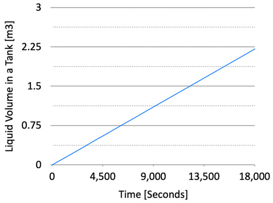 Figure 6 illustrates the vapor pressure and temperature profiles in response to VRV operation during the vapor’s return to the atmosphere, while Figure 7 shows the volume of LCO2 accumulated in the cargo tank during the loading process.