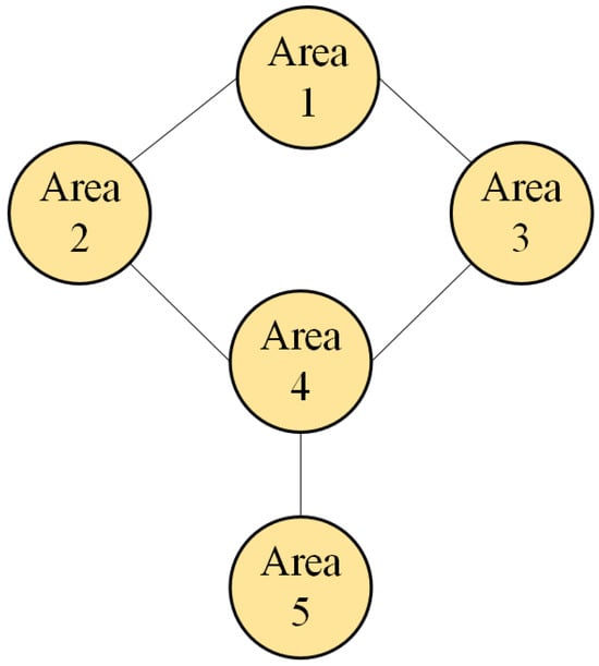 Suppose is a graph of a MAPS, which consists of n cooperating areas such that , with vertices and edges of the graph. Let an undirected path from area i to area j be represented as a sequence of edges such as . Consider Å to be an adjacency matrix, also known as the diagonal matrix, expressed as and Å. Let be a diagonal matrix where the diagonal elements represent the degree of the ith area. Specifically, D is a matrix in which all off-diagonal elements are zero, and the diagonal element corresponds to the degree of the ith area. Thus, D can be expressed as: