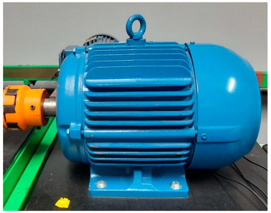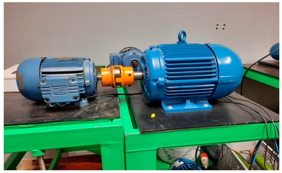 The methodology applied for conducting the tests uses a three-phase induction motor as the primary machine, as shown in Figure 8. The speed is determined by the primary machine, while the load on the shaft is determined by the motor being tested.