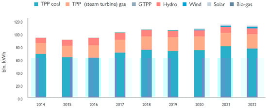 Structure of electricity production in 2014–2022 (Source: The National Energy Report KAZENERGY 2023).