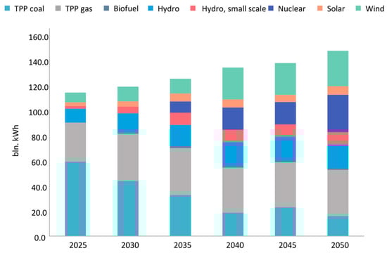 Nuclear generation is predicted to account for more than 2 GW of capacity by 2035, with at least 4 GW by 2050 in the structure of new energy capacities required for commissioning (Figure 3) [28].