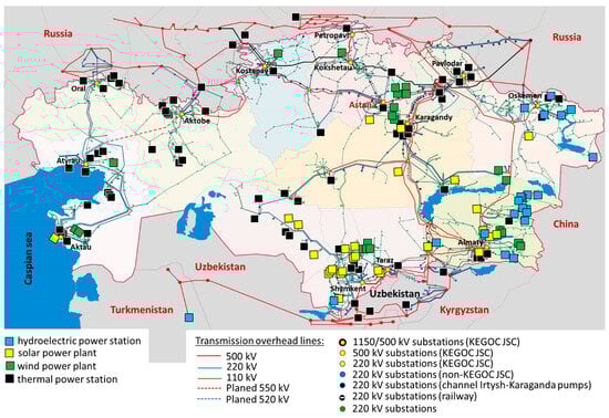 Scheme of Kazakhstan energy system (source: Kazakhstan Electricity Grid Operating Company).