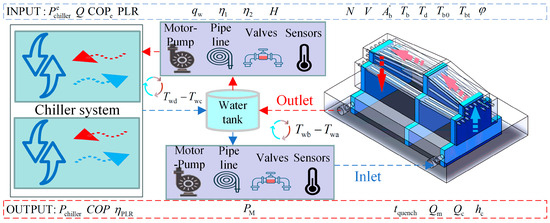 where Qtotal is the nominal cooling capacity, The power of the chiller Pchiller under stable operation is as follows Equation (29):
