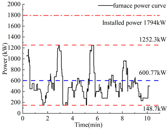 A portion of the energy consumption within the furnace can be simplified as fixed consumption. For example, energy consumption related to system controllers, displays, communication equipment, and similar components can be considered constant values. When processing parameters, such as plate size, production cycle, heating time, and atmosphere circulation, remain unchanged, and the furnace reaches a relatively stable operating state, the electric motor loads and equipment speeds like rollers and fans also stabilize. Consequently, this portion of energy consumption can be treated as fixed. Therefore, the fixed energy consumption model of the furnace can be simplified from Equation (6) to Equation (9) [20]: