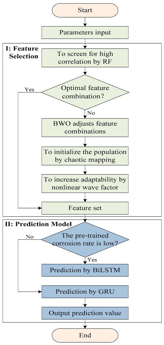 Wang, J.; Kong, Z.; Shan, J.; Du, C.; Wang, C. Corrosion Rate Prediction of Buried Oil and Gas Pipelines: A New Deep Learning Method Based on RF and IBWO-Optimized BiLSTM–GRU Combined Model. Energies 2024, 17, 5824. https://doi.org/10.3390/en17235824
