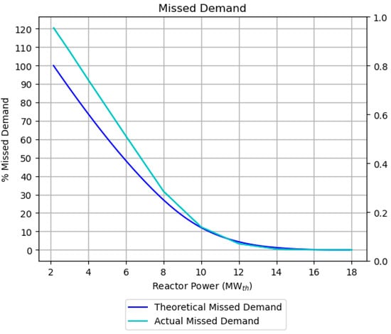 To determine the price of electricity and diesel that was required to reduce the amount of diesel to about 5% of the island’s current consumption, a set of optimizations was performed. The reactor and TES sizes were optimized for a range of diesel prices, and the percentage of diesel used for each case was calculated. With a diesel and electricity price of USD 993/MWhe, the optimal reactor size was found to be 11.66 MWth, and the optimal TES size was found to be 73.18 MWhth. This combination resulted in diesel being used for 5% of the non-renewable electricity load. This diesel price is used for the remainder of the results.