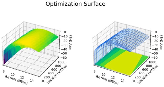 TES optimization surface and solution for a fixed 15 MWth reactor.