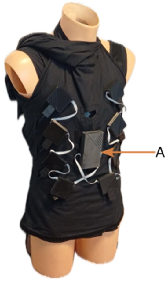 Developed vest with 102 textile electrodes, A—central unit of the device (source own).