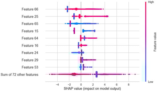 Shapley values were used to explain the influence of individual features on LightGBM’s predictions. Each feature value was conceptualized as a “player” in a cooperative game, where the overall prediction outcome represents the “reward”. Shapley values fairly distribute this reward among features, determining their contributions to the final classification. An analysis of the top three influential features demonstrated their impact on disease classification, revealing that only a specific subset of electrodes notably influences classification outcomes [].