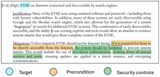 After identifying and selecting the appropriate source for threat knowledge, the next phase involves annotating the information concerning “Target”, “Precondition”, and “Security Control”. Currently, this step is conducted manually, but we have plans to automate it in future work using machine learning and reinforcement learning techniques. Figure 3 illustrates an example of the annotation process for extracting relevant security-related threats.