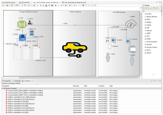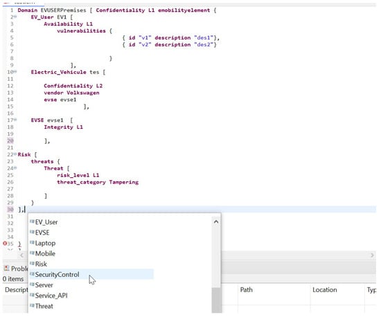 The second step involves modeling the existing EV charging infrastructure using the EMSA DSML outlined in Section 5.1. This stage also includes specifying the current security controls in place. Whether the system is in the design phase or is an already installed system requiring enhancement, both scenarios offer distinct advantages. In the design phase (e.g., new emerging EV markets like Morocco), our approach enables the early detection of potential threats, allowing for proactive mitigation with targeted security controls. Conversely, for existing systems (e.g., established EV markets like Europe and the US), the goal is to equip charging station operators with “quick wins” to effectively minimize their attack surfaces.