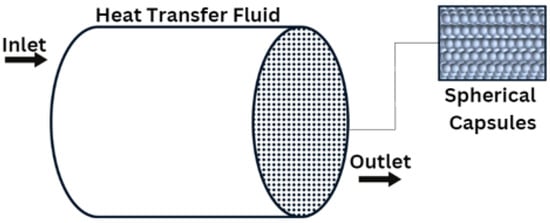 Contemporary research on phase change materials (PCMs) focuses on various facets such as the materials themselves, heat transfer fluids, and their properties such as temperature, flow rate, configurations, structural designs, and additives. This exploration spans both theoretical analysis and experimental investigations to uncover their diverse applications [186]. One of the most effective ways of enhancing heat transferability is the use of PCM-packed beds, improving storage density and efficiency. Figure 4 illustrates a spherical capsule-packed bed with multiple PCM arrangements.
