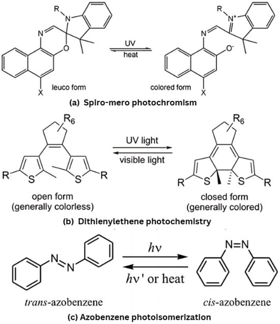 - Abdollahi, A.; Roghani-Mamaqani, H.; Razavi, B. Stimuli-chromism of photoswitches in smart polymers: Recent advances and applications as chemosensors. Prog. Polym. Sci. 2019, 98, 101149. [Google Scholar] [CrossRef]