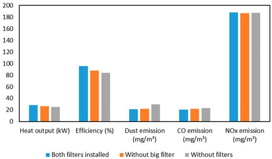 | Boiler efficiency with one filter fitted [%] | 87.53 |