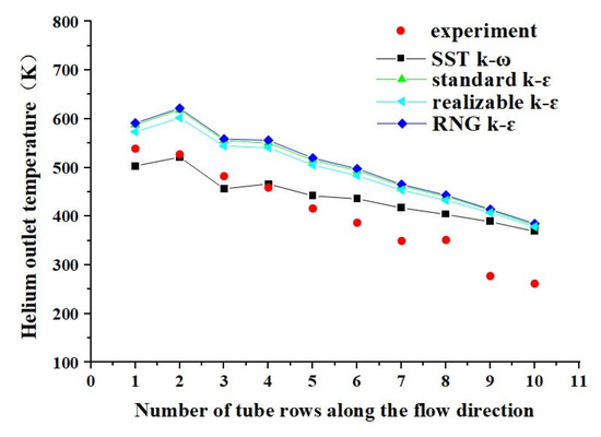 Since there is no publicly available experimental data on the precooler, a similar model called the experimental module JMHX (described in reference [10]) has been employed for numerical method validation in this study. The JMHX exhibits comparable microchannel layouts and flow characteristics to SABRE’s precooler, while also providing geometric and experimental data [10]. Figure 5 illustrates the three-dimensional structure of the JMHX heat exchanger model. The model comprises microtube bundles with a diameter of 0.38 mm, where helium serves as the coolant inside the tubes and nitrogen acts as the hot fluid outside them. Assuming a heat capacity ratio of 1 in numerical simulations, the SST k-ω turbulence model, incorporating cross-diffusion and propagation of turbulent shear stress [19], demonstrates superior accuracy in fitting the depicted experiment’s results, as shown in Figure 6. Consequently, the SST k-ω turbulence model is adopted in this paper.