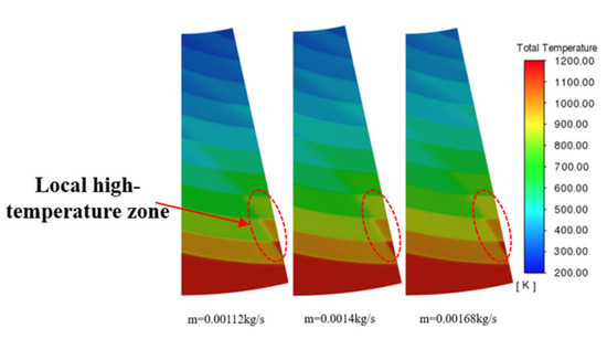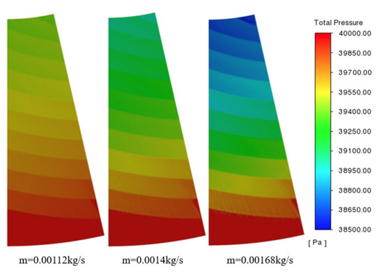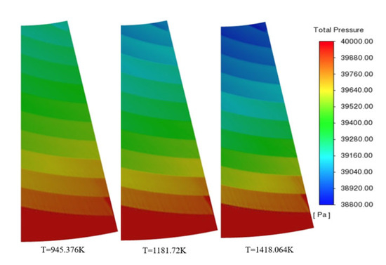 Distributions of total pressures in a precooler with different inlet total temperatures.