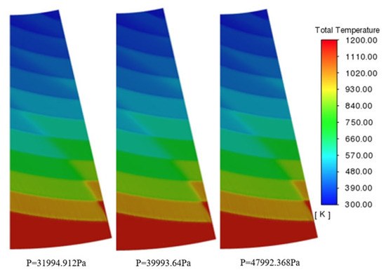 Distributions of total temperatures in a precooler unit with different inlet total pressures.
