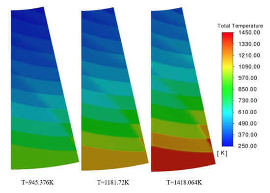 Distributions of total temperatures in a precooler with different inlet total temperatures.