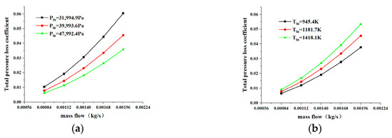 Coupling effects of different inlet conditions on total pressure loss. (a) Interactions of total pressure and massflow; (b) Interactions of total temperature and massflow.