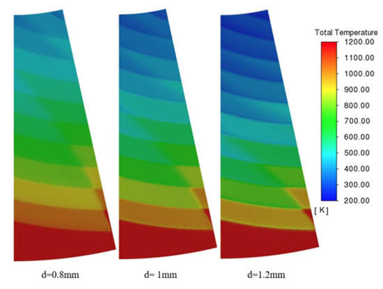 Distributions of total temperatures in a precooler unit with different tube diameters.