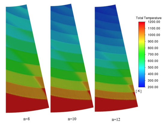 Furthermore, it can be observed from Figure 13 that the reduction in airflow velocity caused by increasing inlet total temperature resulted in a higher outlet total air temperature within the computational domain. However, this also led to an increased temperature difference between the inlet and outlet sections of the precooler unit, indicating an augmented thermal loading of incoming hot air due to a larger temperature gradient between the hot air and coolant within the microtubes, and an enhanced heat transfer rate.