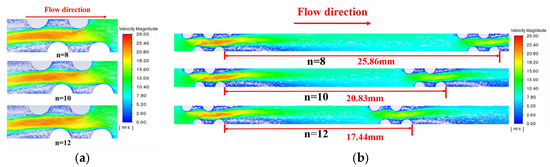Spatial streamline distributions in a precooler with different numbers of tube rows. (a) Within the tube row. (b) Between the adjacent tubes of different rows.