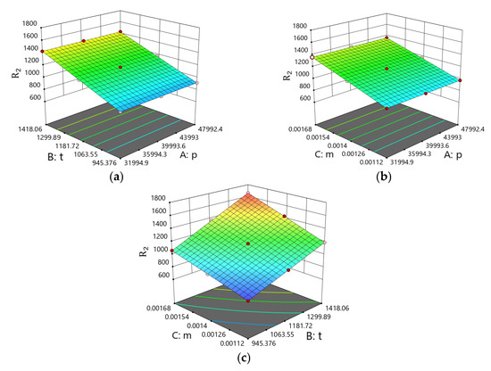 The analysis of variance (ANOVA) table for the target of R1 is presented in Table 3, where a larger F value and smaller p-value indicated greater significance of the related factors. It can be observed from Table 3 that the p-values for inlet total pressure, inlet total temperature, and air massflow were all less than 0.05, indicating their significant influence. Furthermore, based on the F values, it can be determined that the air massflow rate had the most significant impact on total pressure loss in the precooler; followed by inlet total pressure, and then inlet total temperature. The p-value of the fitted model was less than 0.0001, indicating the high significance of this fitted model.