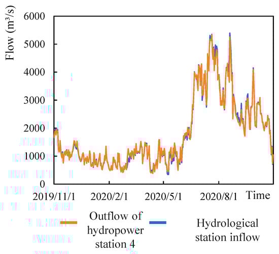 Comparison diagram of Hydropower station 4’s outflow and the hydrological station flow.
