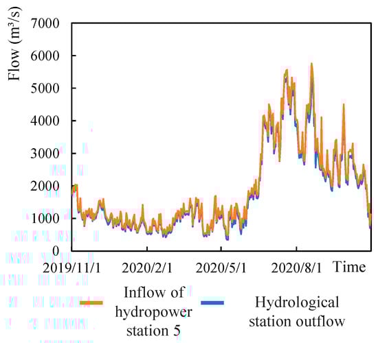 Comparison diagram of Hydropower station 5’s inflow and the hydrological station flow.