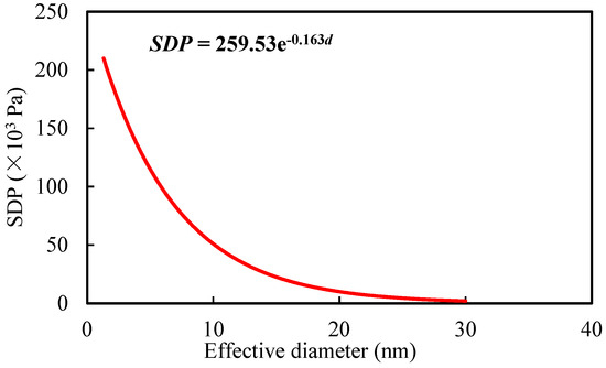 The appropriate thickness of nanoparticles is critical in influencing the permeability of crude oil. A compilation and fitting of various studies on SDP across different nanoparticle sizes reveal an exponential increase in SDP as particle size decreases. Kumar reached a similar conclusion, indicating that smaller particles lead to higher SDP and more significant meniscus displacement in nanofluids with a fixed volume fraction [25].