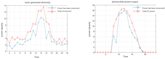 The figure indicates that as the consumption rate of wind and solar power increases, the overall operating cost decreases. The output and consumption of wind power and solar PV systems under these conditions are illustrated in Figure 16.
