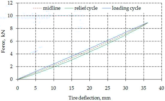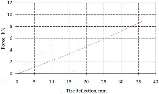 Figure 4) were characterized by negligibly small nonlinearity, so their form was assumed to be linear. The directional coefficients of the linear regression lines thus obtained gave the directional coefficients, which were also the stiffness coefficients of the tested wheel.