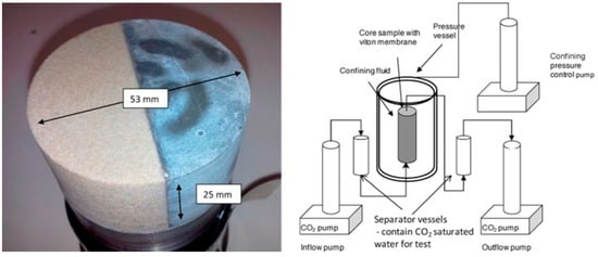 Cement sandstone plug composite and the testing setup of core flooding used by Connell, et al. [40].