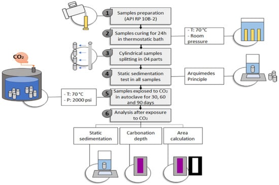 As evident from the above reactions, the interaction between cement and CO2 leads to a degradation of the cement’s mechanical and transfer properties, which can pose significant well integrity challenges in CCS wells. As a result, numerous studies have been carried out to investigate the effects of carbonation and bicarbonation on various well-cement composites. In this respect, different authors used different setups for the carbonation test. Some of the authors used static reactors, while others used dynamic reactors. Hence, this paper will provide a comprehensive review of testing setups, additives used, methodologies employed, curing parameters, and the conclusions drawn from those studies.