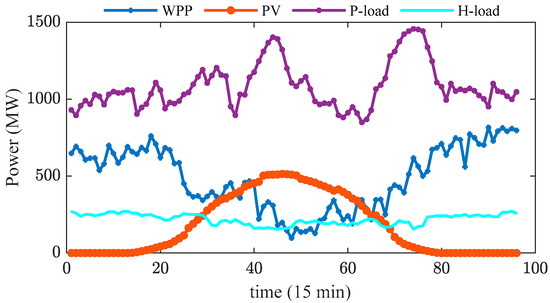 where , , and are the intraday reserve capacity factors of WPP, PV, and load, and take values of 0.1, 0.05, and 0.05, respectively.