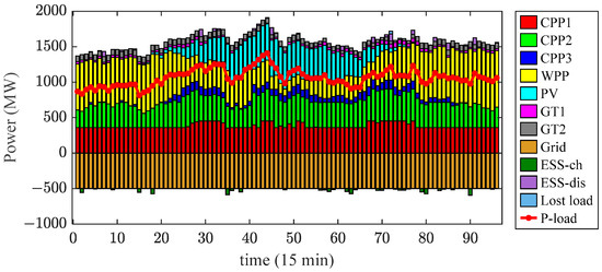 where and , respectively, represent the intraday operating costs of CPP and the costs associated with load shedding; and are the penalty factor (value is 1000) for lost load and the quantity of lost load at time t, respectively.