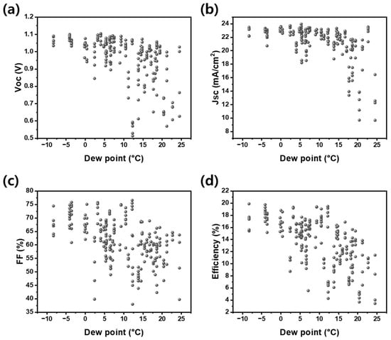 - Ko, Y.; Lee, C.; Kim, Y.; Kim, Y.; Yun, Y.J.; Jun, Y. Dew point temperature as an invariant replacement for relative humidity for advanced perovskite solar cell fabrication systems. J. Mater. Chem. A 2018, 6, 20695–20701. [Google Scholar] [CrossRef]