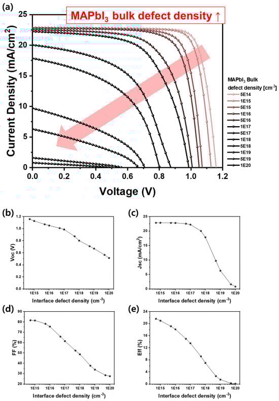 - Chouhan, A.S.; Jasti, N.P.; Avasthi, S. Effect of interface defect density on performance of perovskite solar cell: Correlation of simulation and experiment. Mater. Lett. 2018, 221, 150–153. [Google Scholar] [CrossRef]