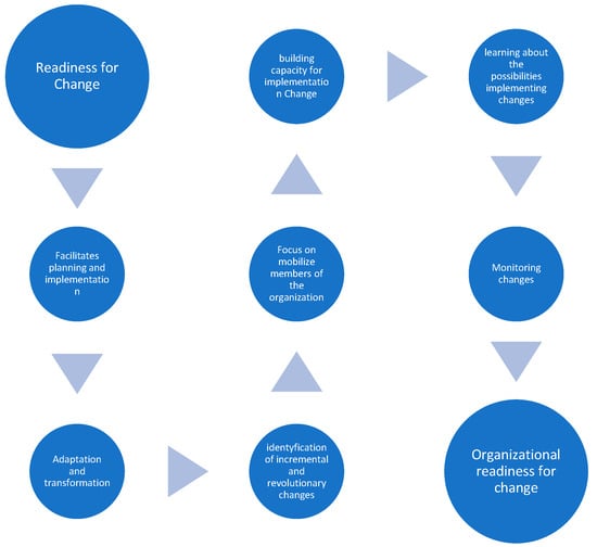 - Mladenova, I. Relation between organizational capacity for change and readiness for change. Adm. Sci. 2022, 12, 135. [Google Scholar] [CrossRef]